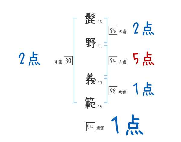 天運![]() | 髭野義範さんの天運は26画の2つ星!波瀾万丈かも。信頼できる人を大事にしましょう。 家系が持つ宿命的な運勢を表します。祖先から受け継いだ苗字ですので自分の力が及びません。家柄を象徴します。 |