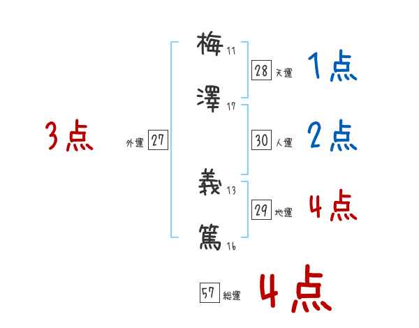 梅澤義篤さんの画数の鑑定結果