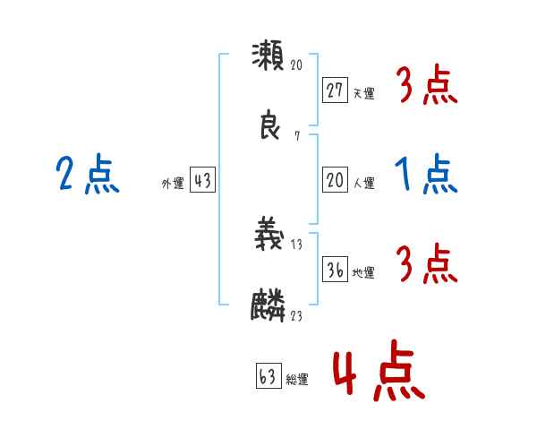 瀬良義麟さんの画数の鑑定結果