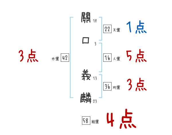 關口義麟さんの画数の鑑定結果