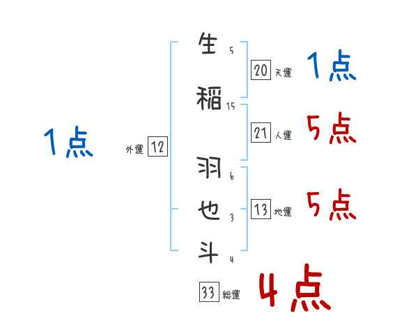 総運![]() | 生稲羽也斗さんの総運は33画の4つ星!権力志向でプライドが高い。勇気があり運を切り開き成功する。 あなたの人生を表す1番重要な運勢です。生涯を通じて影響する総合運となり、主に50歳以降の晩年期に影響を及ぼします。 |