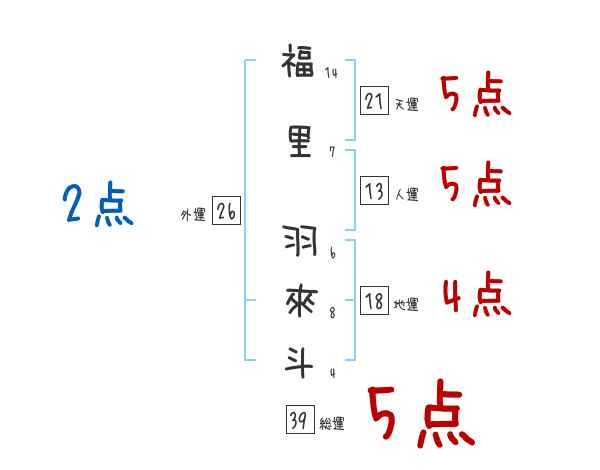 福里羽來斗さんの画数の鑑定結果