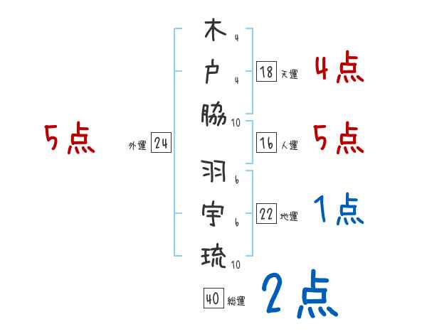 木戸脇羽宇琉さんの外運は24画の5つ星