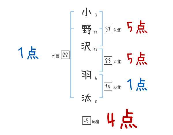 小野沢羽汰さんの画数の鑑定結果