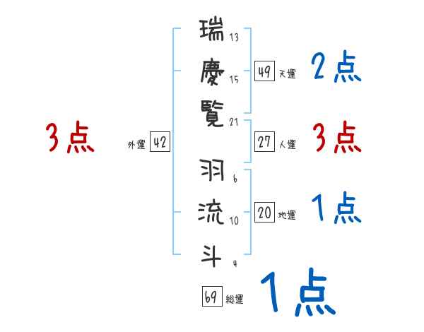瑞慶覧羽流斗さんの画数の鑑定結果