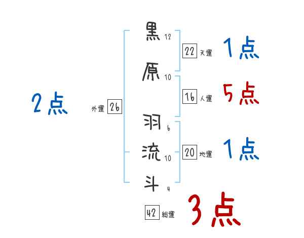 外運![]() | 黒原羽流斗さんの外運は26画の2つ星!波瀾万丈かも。信頼できる人を大事にしましょう。 生活面を象徴する運勢です。外部から受ける影響力を表し、結婚運、家庭運や職場、環境への順応性を表します。 |