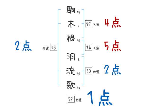 駒木根羽流歌さんの画数の鑑定結果
