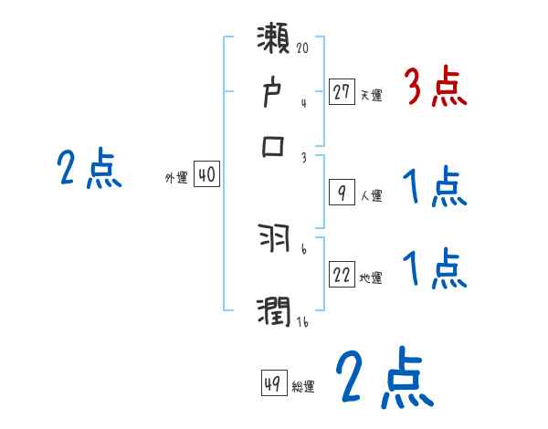 瀬戸口羽潤さんの画数の鑑定結果
