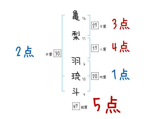 外運![]() | 亀梨羽琉斗さんの外運は30画の2つ星!浮き沈みの激しさに注意しましょう。 生活面を象徴する運勢です。外部から受ける影響力を表し、結婚運、家庭運や職場、環境への順応性を表します。 |
