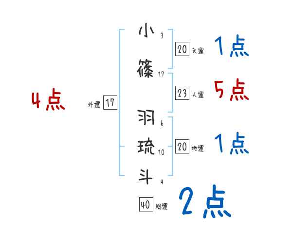小篠羽琉斗さんの画数の鑑定結果