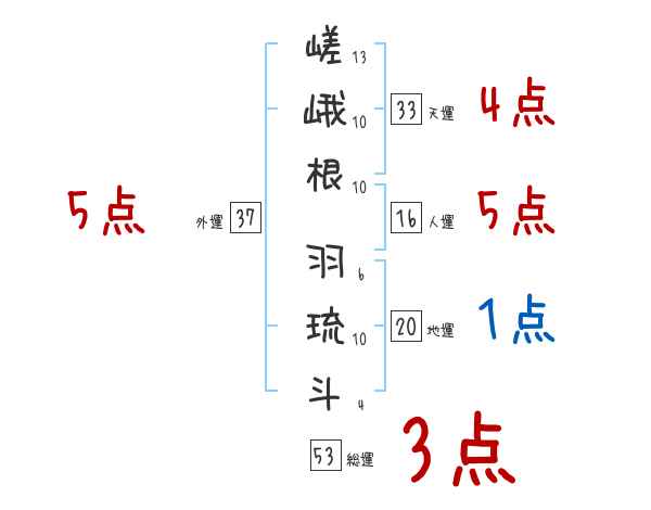 嵯峨根羽琉斗さんの画数の鑑定結果