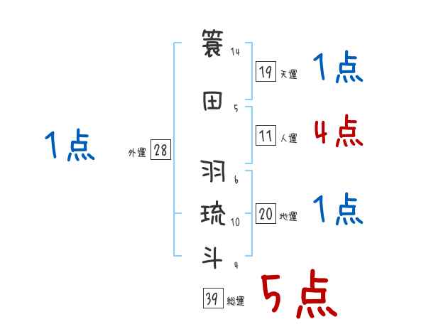 外運![]() | 簑田羽琉斗さんの外運は28画の1つ星!家庭環境に注意。スポーツで活躍できる能力があるかも。 生活面を象徴する運勢です。外部から受ける影響力を表し、結婚運、家庭運や職場、環境への順応性を表します。 |