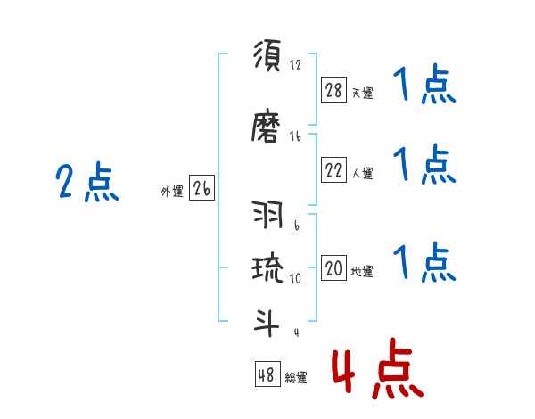 天運![]() | 須磨羽琉斗さんの天運は28画の1つ星!家庭環境に注意。スポーツで活躍できる能力があるかも。 家系が持つ宿命的な運勢を表します。祖先から受け継いだ苗字ですので自分の力が及びません。家柄を象徴します。 |
