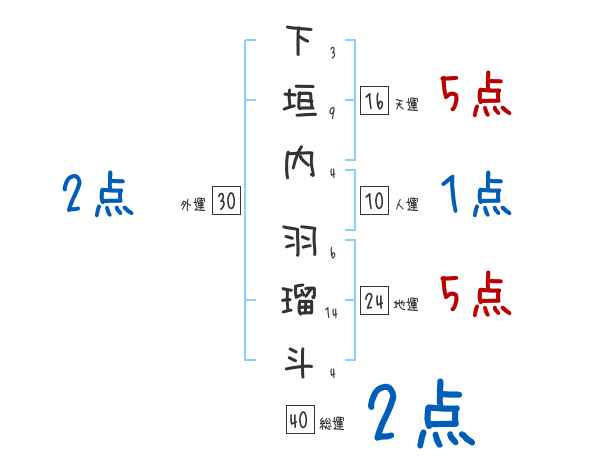 下垣内羽瑠斗さんの画数の鑑定結果