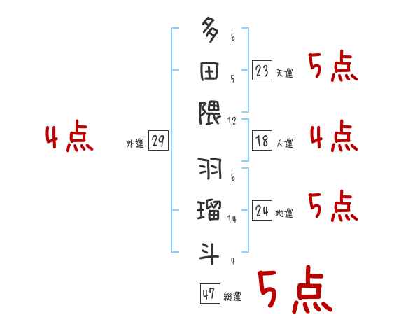 多田隈羽瑠斗さんの総運は47画の5つ星