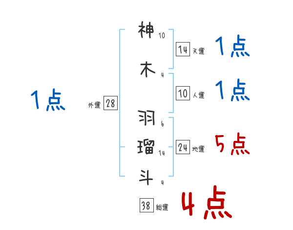 外運![]() | 神木羽瑠斗さんの外運は28画の1つ星!家庭環境に注意。スポーツで活躍できる能力があるかも。 生活面を象徴する運勢です。外部から受ける影響力を表し、結婚運、家庭運や職場、環境への順応性を表します。 |