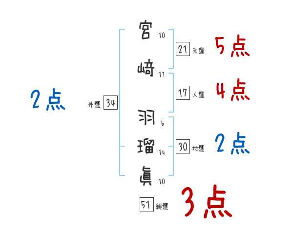 宮﨑羽瑠眞さんの画数の鑑定結果