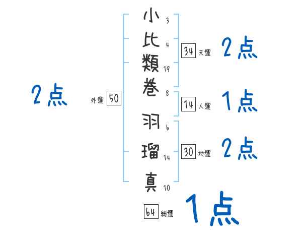 天運![]() | 小比類巻羽瑠真さんの天運は34画の2つ星!独創性に優れるが、自尊心が強く災難に注意しましょう。 家系が持つ宿命的な運勢を表します。祖先から受け継いだ苗字ですので自分の力が及びません。家柄を象徴します。 |