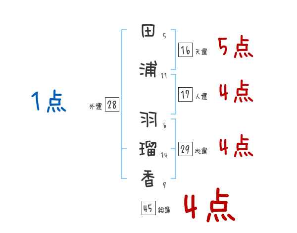 外運![]() | 田浦羽瑠香さんの外運は28画の1つ星!家庭環境に注意。スポーツで活躍できる能力があるかも。 生活面を象徴する運勢です。外部から受ける影響力を表し、結婚運、家庭運や職場、環境への順応性を表します。 |