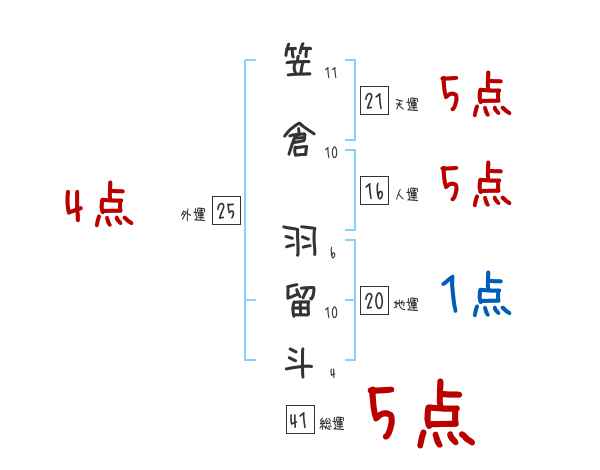 笠倉羽留斗さんの画数の鑑定結果