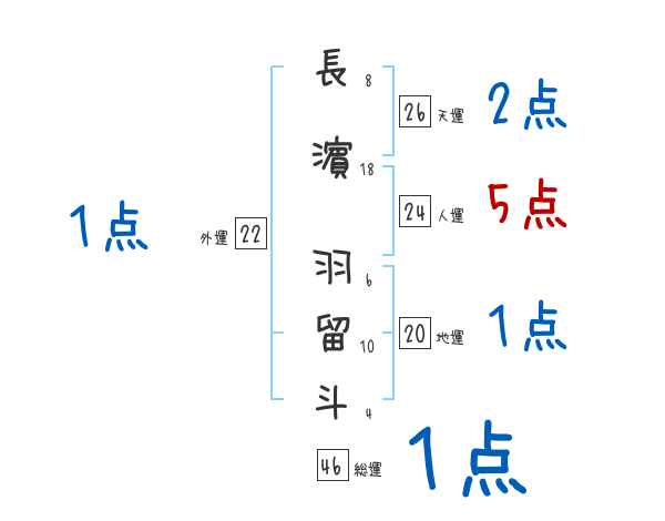 天運![]() | 長濵羽留斗さんの天運は26画の2つ星!波瀾万丈かも。信頼できる人を大事にしましょう。 家系が持つ宿命的な運勢を表します。祖先から受け継いだ苗字ですので自分の力が及びません。家柄を象徴します。 |