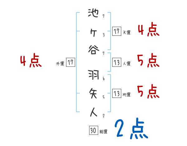 池ヶ谷羽矢人さんの画数の鑑定結果