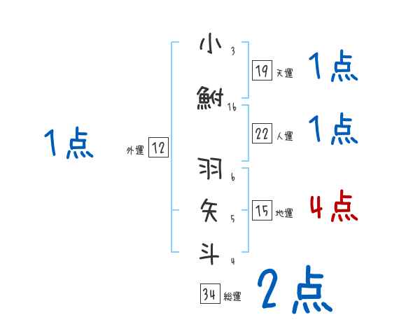 小鮒羽矢斗さんの画数の鑑定結果
