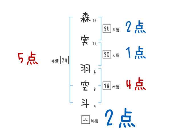 森実羽空斗さんの画数の鑑定結果
