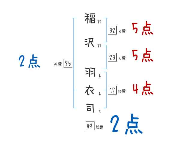 稲沢羽衣司さんの画数の鑑定結果