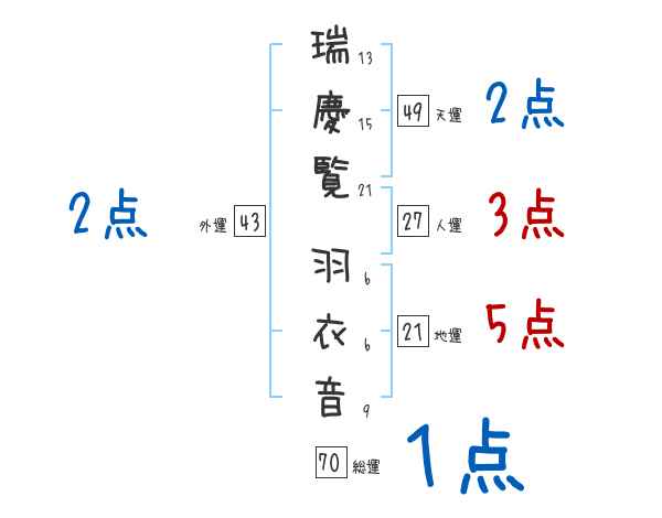 瑞慶覧羽衣音さんの画数の鑑定結果