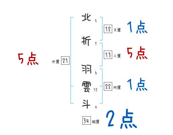 北折羽雲斗さんの画数の鑑定結果