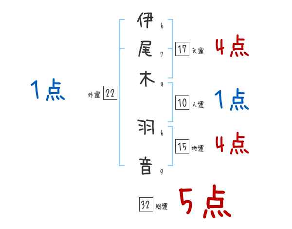 総運![]() | 伊尾木羽音さんの総運は32画の5つ星!柔軟性があり成功する。チャンスが多く金運が良い。 あなたの人生を表す1番重要な運勢です。生涯を通じて影響する総合運となり、主に50歳以降の晩年期に影響を及ぼします。 |