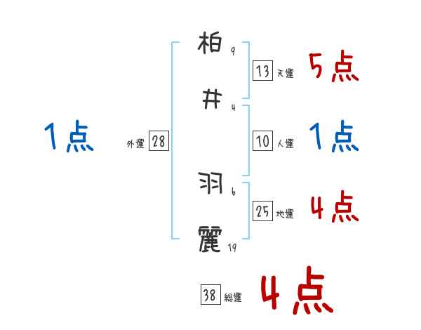 外運![]() | 柏井羽麗さんの外運は28画の1つ星!家庭環境に注意。スポーツで活躍できる能力があるかも。 生活面を象徴する運勢です。外部から受ける影響力を表し、結婚運、家庭運や職場、環境への順応性を表します。 |