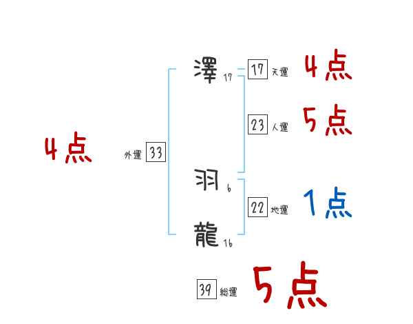 澤羽龍さんの画数の鑑定結果