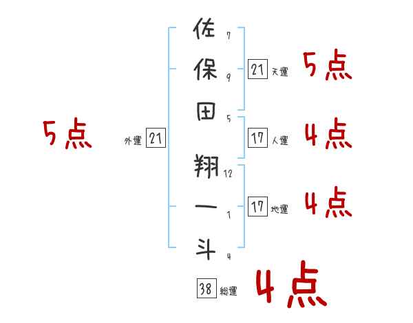 佐保田翔一斗さんの画数の鑑定結果
