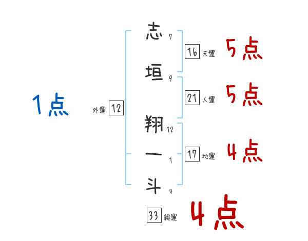 天運![]() | 志垣翔一斗さんの天運は16画の5つ星!人望が厚く大きく発展する。逆転成功が見える。 家系が持つ宿命的な運勢を表します。祖先から受け継いだ苗字ですので自分の力が及びません。家柄を象徴します。 |