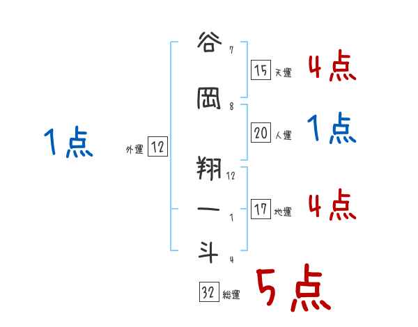 総運![]() | 谷岡翔一斗さんの総運は32画の5つ星!柔軟性があり成功する。チャンスが多く金運が良い。 あなたの人生を表す1番重要な運勢です。生涯を通じて影響する総合運となり、主に50歳以降の晩年期に影響を及ぼします。 |
