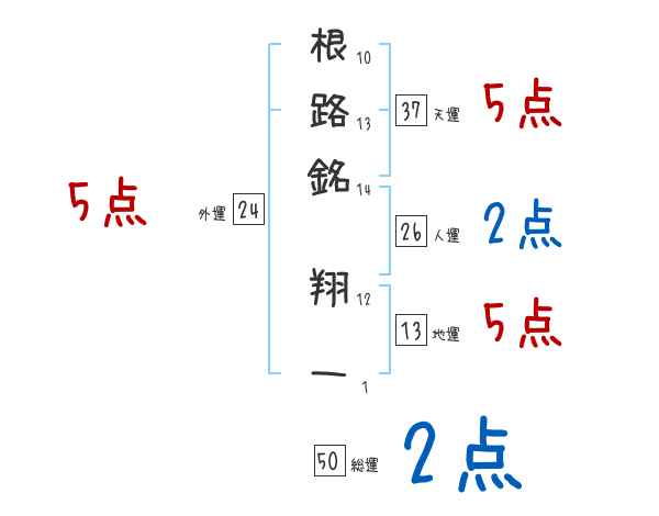 根路銘翔一さんの画数の鑑定結果