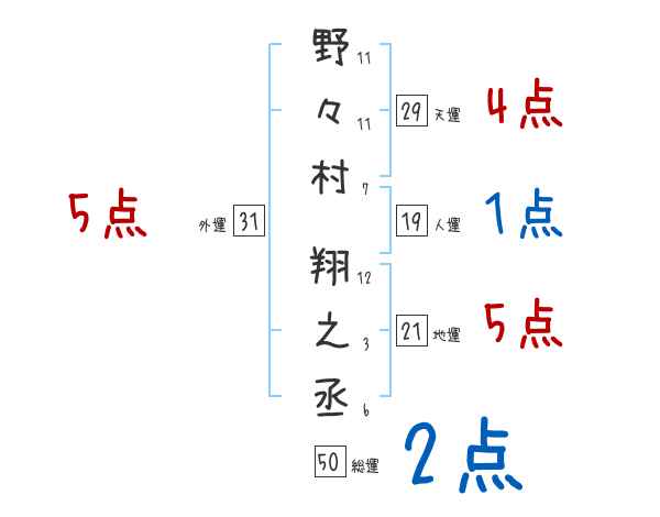 野々村翔之丞さんの画数の鑑定結果