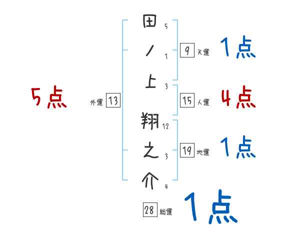 田ノ上翔之介さんの画数の鑑定結果