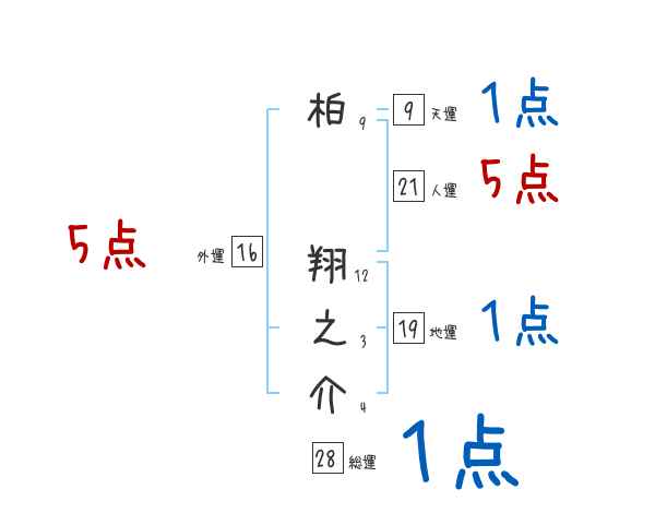 外運![]() | 柏翔之介さんの外運は16画の5つ星!人望が厚く大きく発展する。逆転成功が見える。 生活面を象徴する運勢です。外部から受ける影響力を表し、結婚運、家庭運や職場、環境への順応性を表します。 |