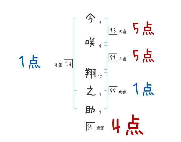 今咲翔之助さんの画数の鑑定結果