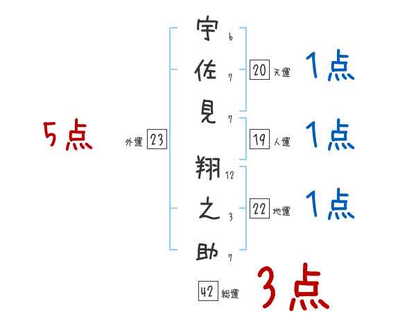 宇佐見翔之助さんの画数の鑑定結果