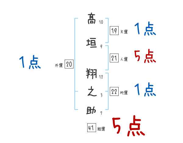 総運![]() | 髙垣翔之助さんの総運は41画の5つ星!大志を抱き、目標に向かって実力を発揮し達成する。温和な性格。 あなたの人生を表す1番重要な運勢です。生涯を通じて影響する総合運となり、主に50歳以降の晩年期に影響を及ぼします。 |