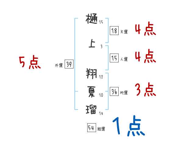 樋上翔夏瑠さんの画数の鑑定結果
