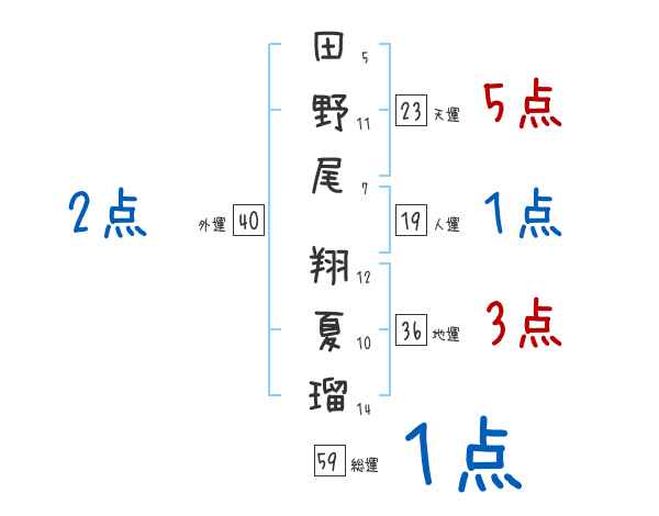 田野尾翔夏瑠さんの天運は23画の5つ星