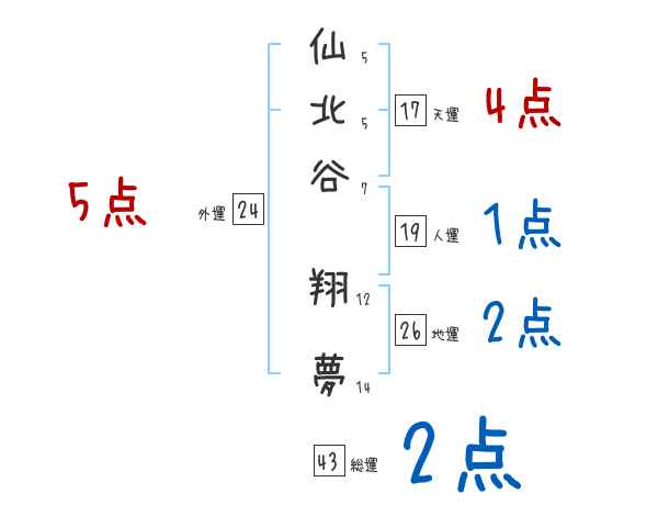仙北谷翔夢さんの画数の鑑定結果