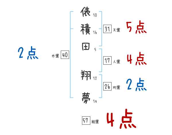 俵積田翔夢さんの画数の鑑定結果