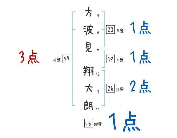 方波見翔大朗さんの画数の鑑定結果
