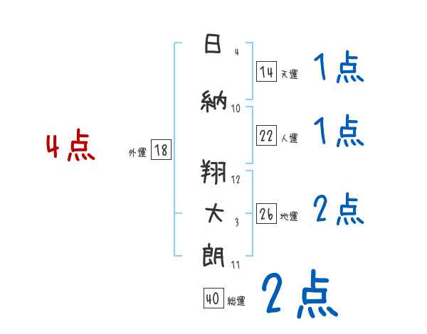 日納翔大朗さんの画数の鑑定結果
